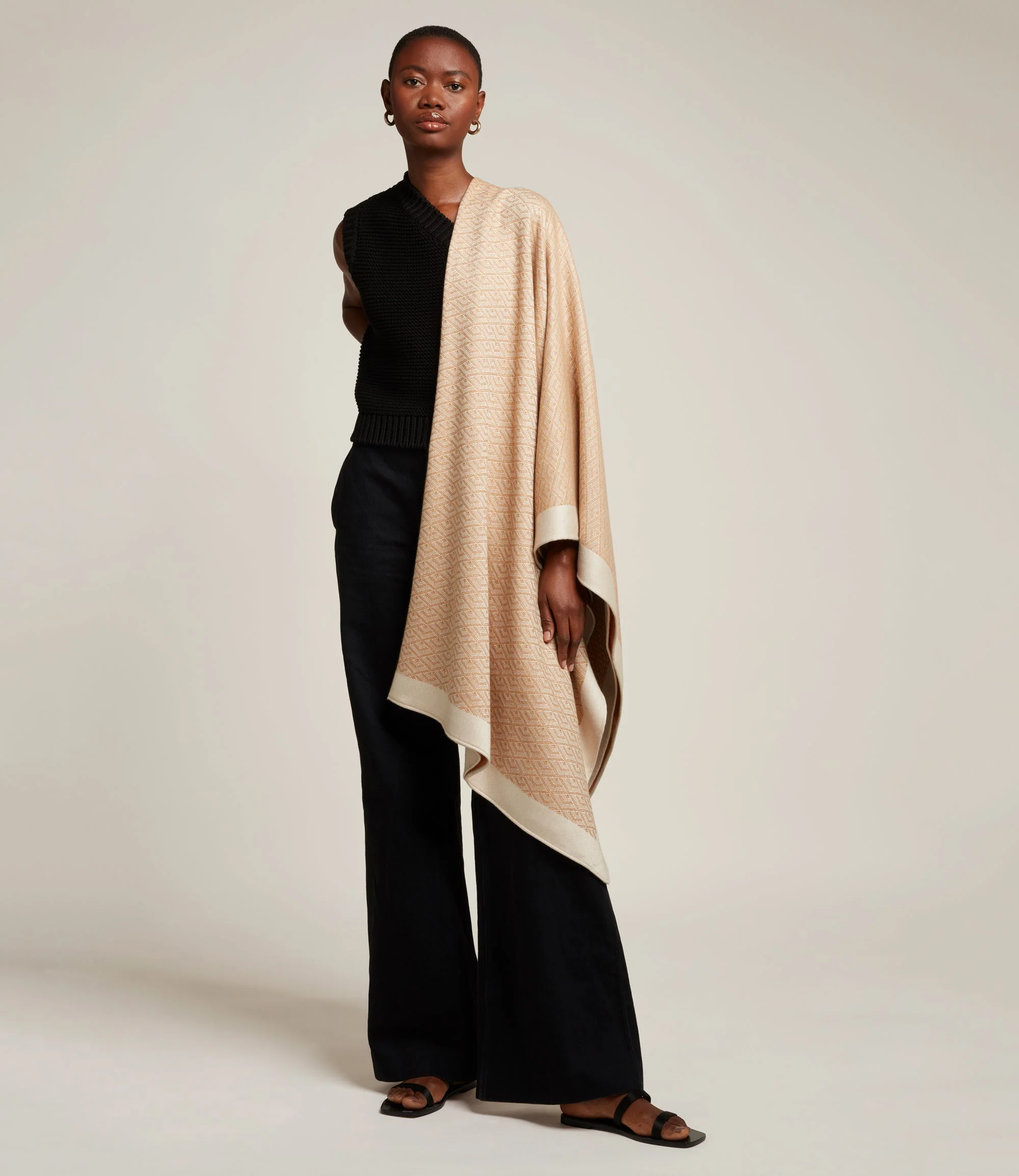 Made from the finest sustainable yarn, our Large Cashmere Throw marries sumptuous comfort and unrivalled craftsmanship. Crafted in a storied mill in the hills of Tuscany using artisanal hand looms, the throw features Métier’s signature diamond pattern in elegant hues of camel and white. Precisely measured to create an oversized silhouette, it can be draped over furnishings and enjoyed at home or your home-away-from-home.