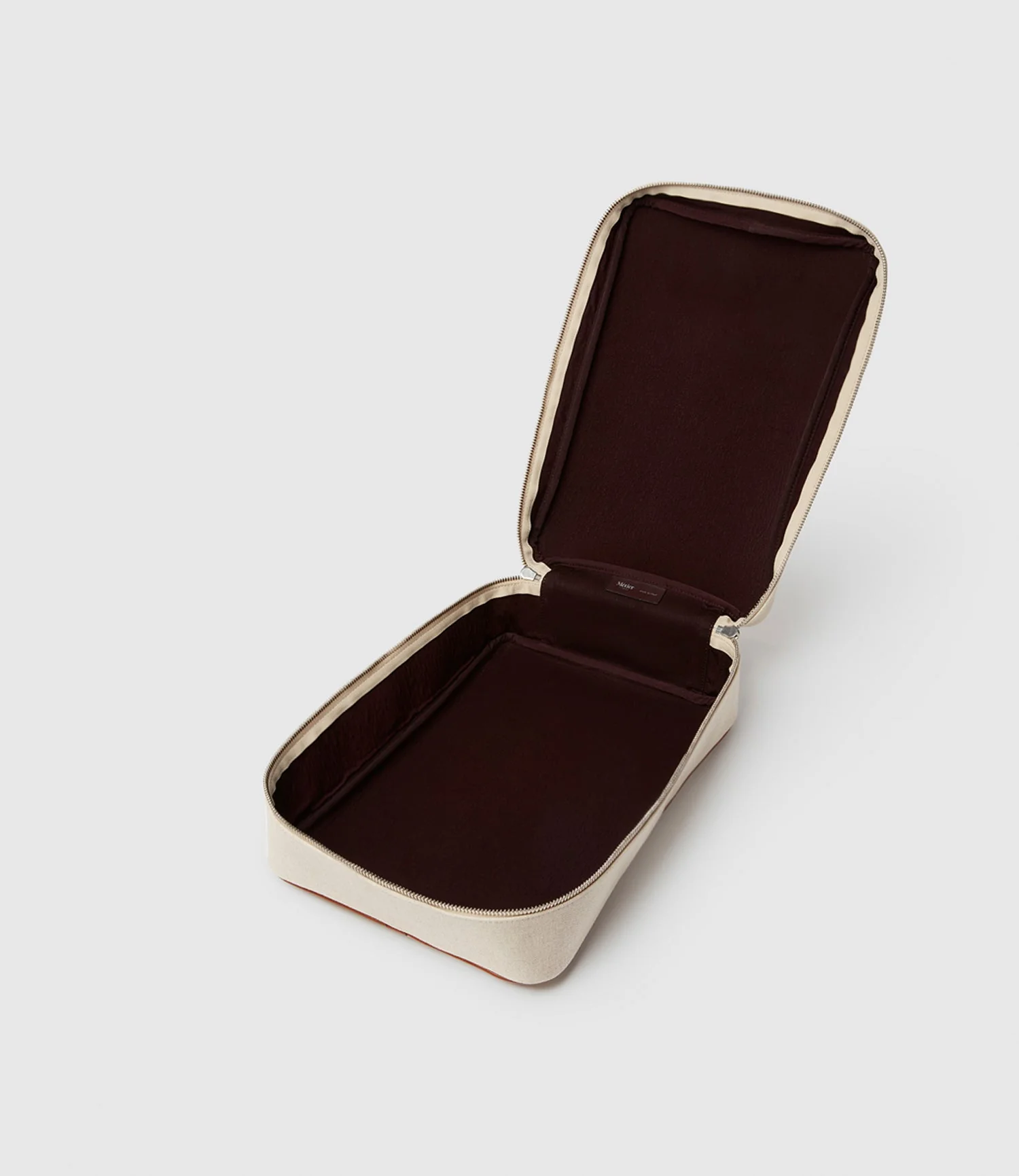 Metier - Large Travel Organiser Natural Linen with Cognac