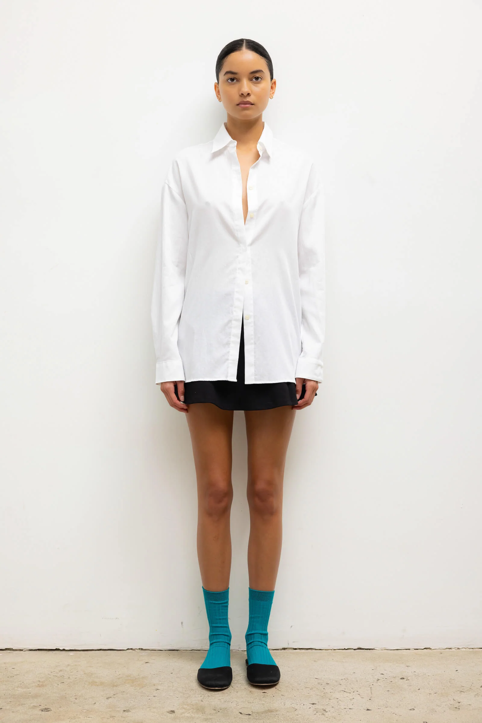 Crafted in our crisp and light Yoko Cotton, the Yoko Oversized Button Down is an oversized silhouette with drop shoulders, an exposed button placket, and a slightly elongated length.
